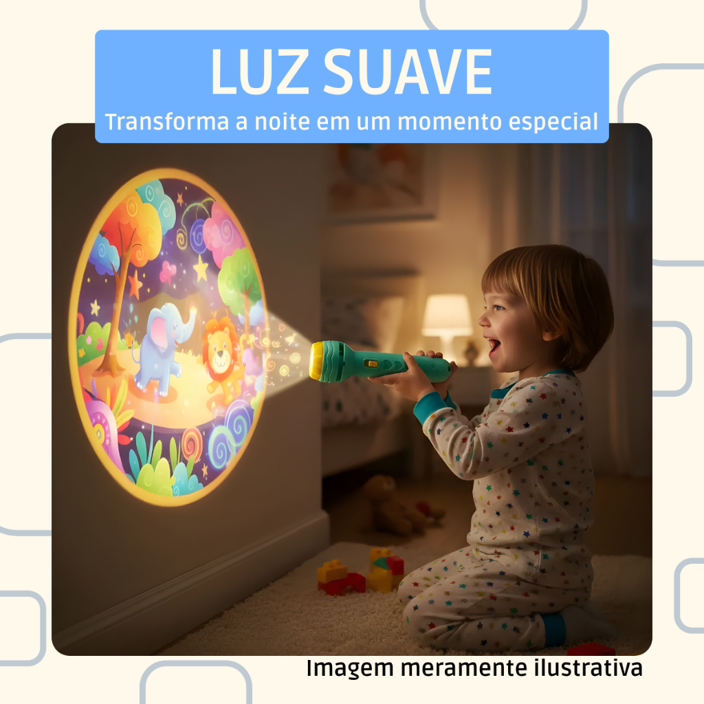 💡 Momentos de magia na hora de dormir ou contação de histórias — cria um clima acolhedor e lúdico.
