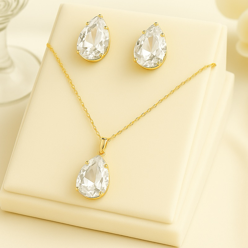 ✨ Conjunto Colar e Brinco Gota Luxo – Folheado a Ouro com Banho de Verniz ✨