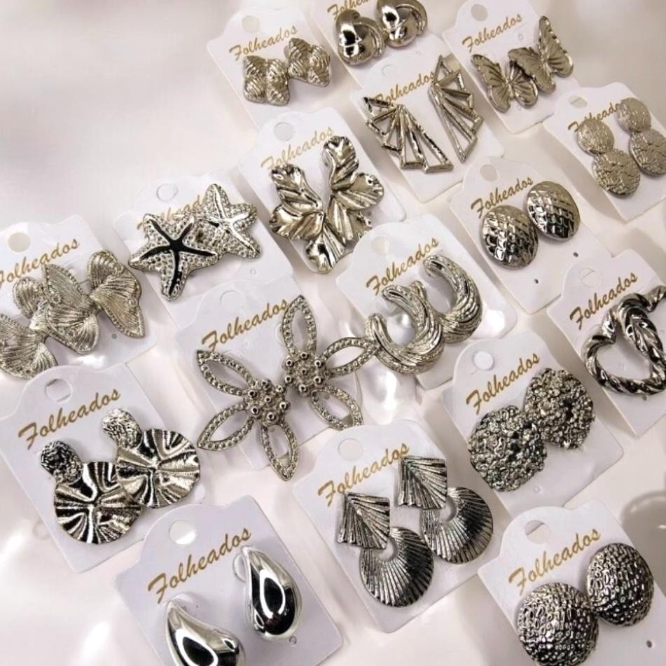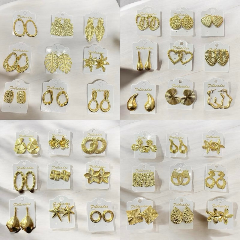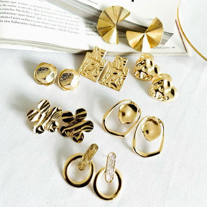 Kit de pares de brincos Folheado a ouro e prata bijuteria feminina modelos sortidos